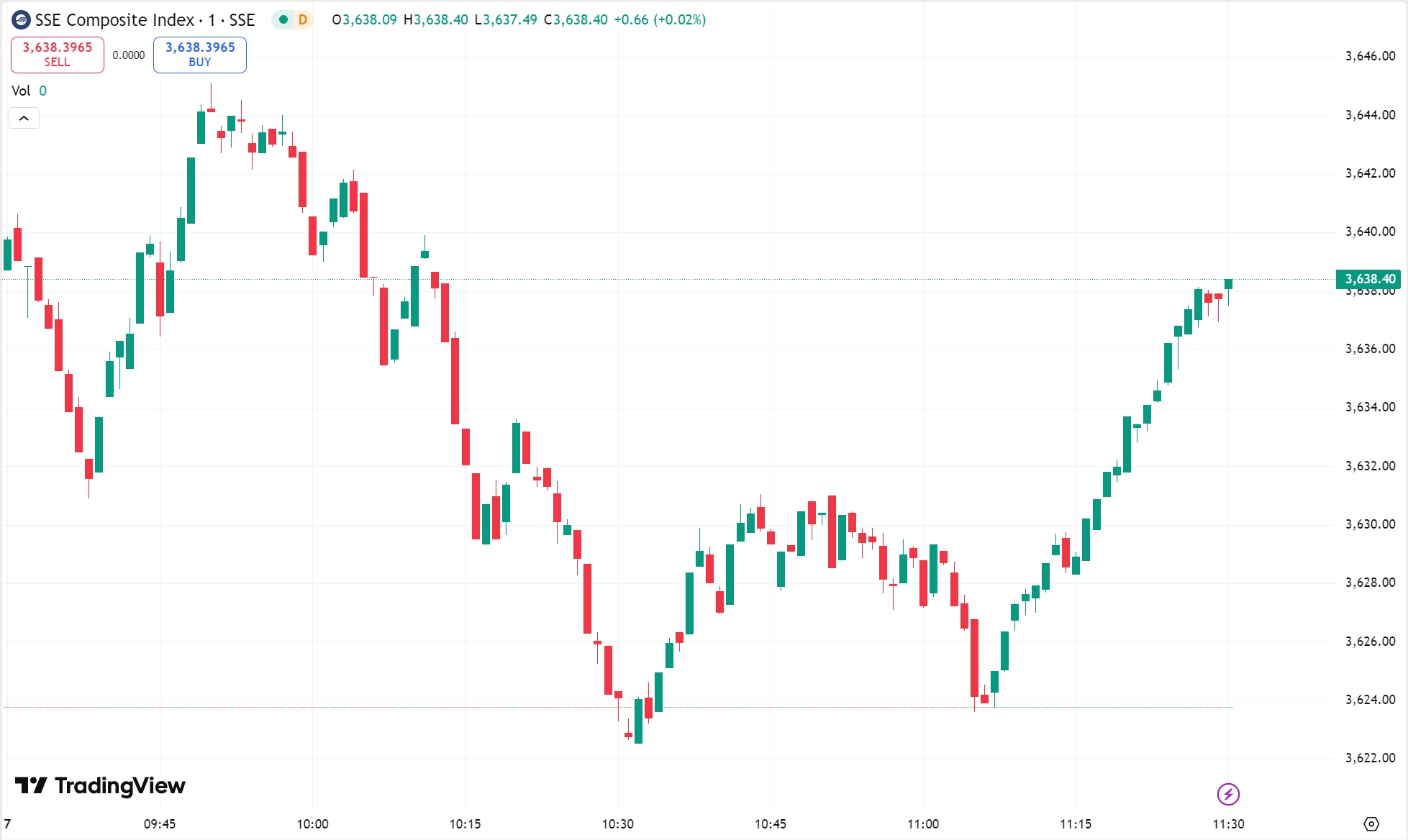 - 沪指涨 0.12%,报 3,638.40 点