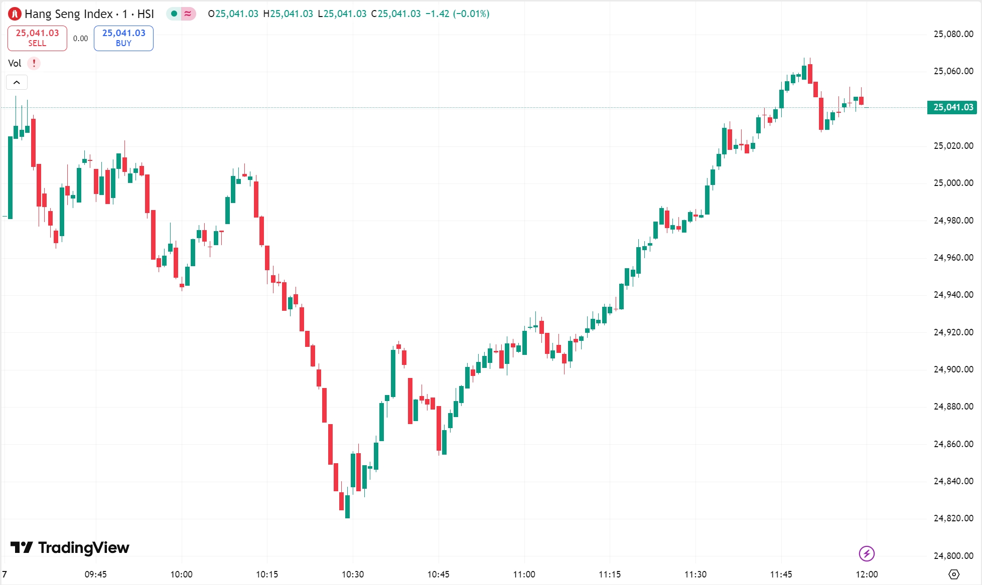 - 恒生指数涨 0.52%,收报 25,041.03 点