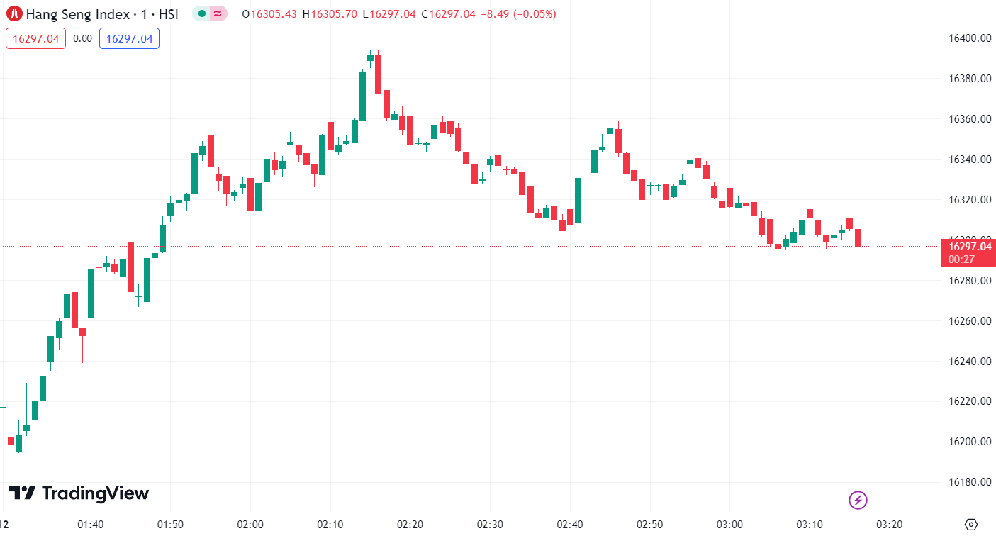 - 恒生指数涨 0.03%,收报 16307.10 点