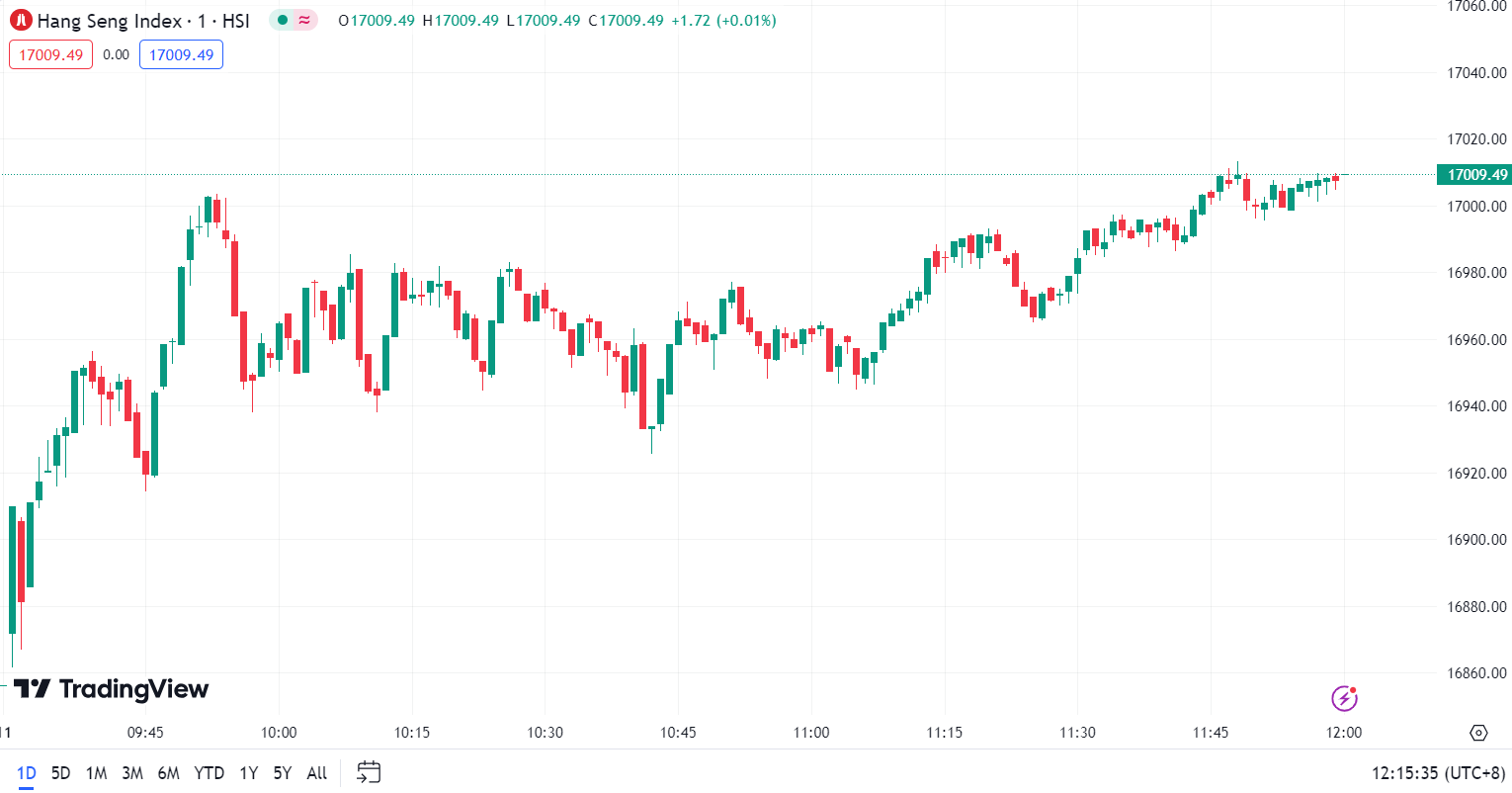 - 恒生指数跌 0.76%,收报 17009.49 点