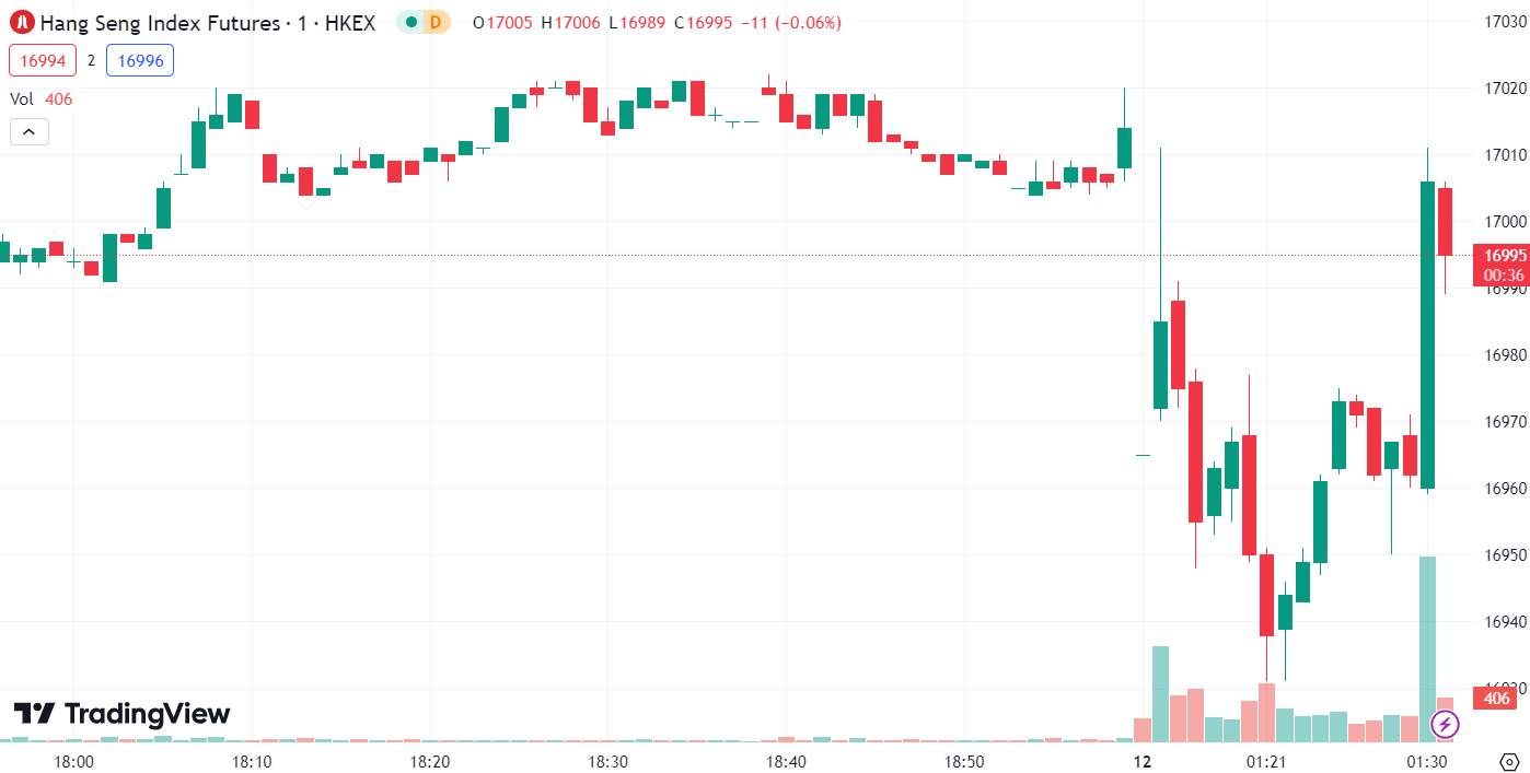 - 恒生指数跌 1.73%,收报 16,799.67 点