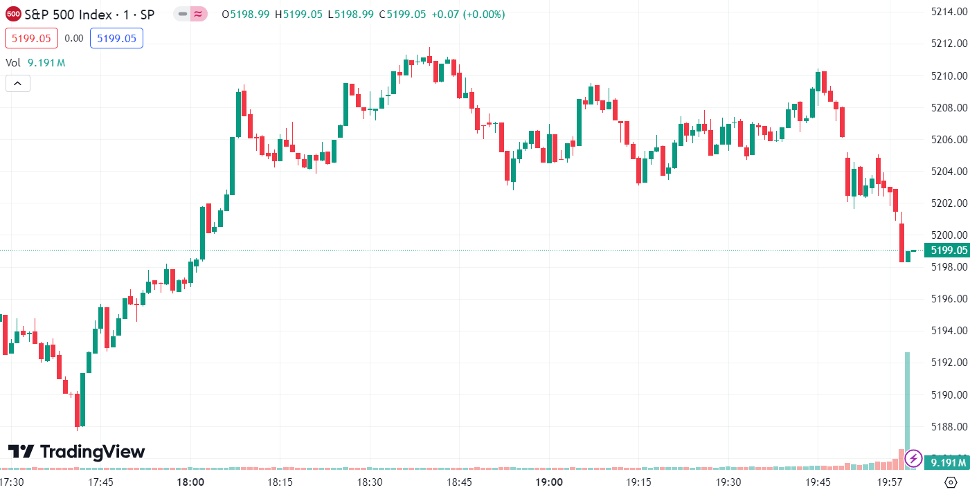 - 标普 500 指数涨 38.42 点, 涨幅为 0.74%,报 5,199.06 点