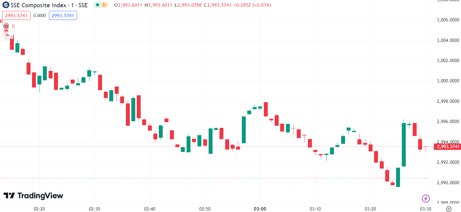 - 沪指跌 0.39% ,报 2,993.57 点