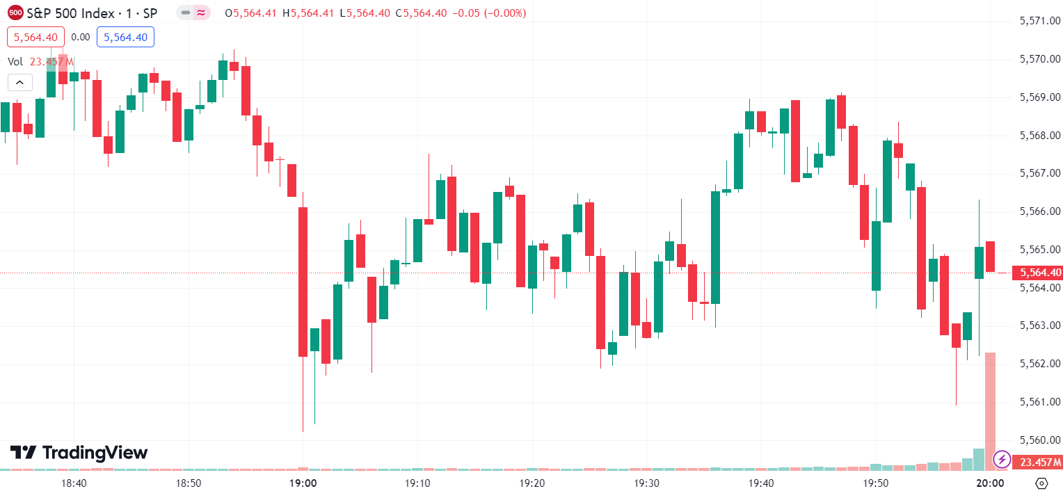 - 标普 500 指数涨 59.41 点,涨幅为 1.08%,报 5,564.41 点