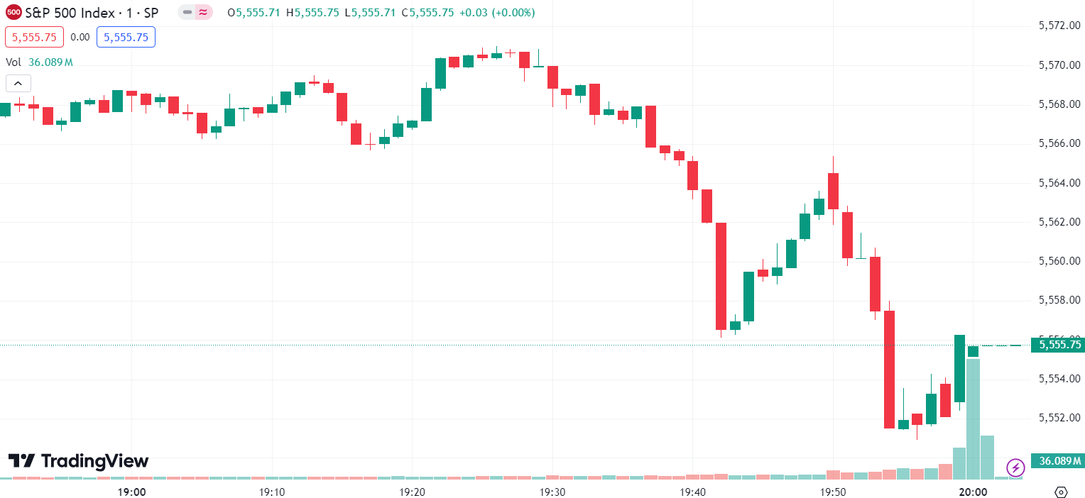 • 标普 500 指数跌 8.67 点,跌幅为0.16%,报 5,555.74 点