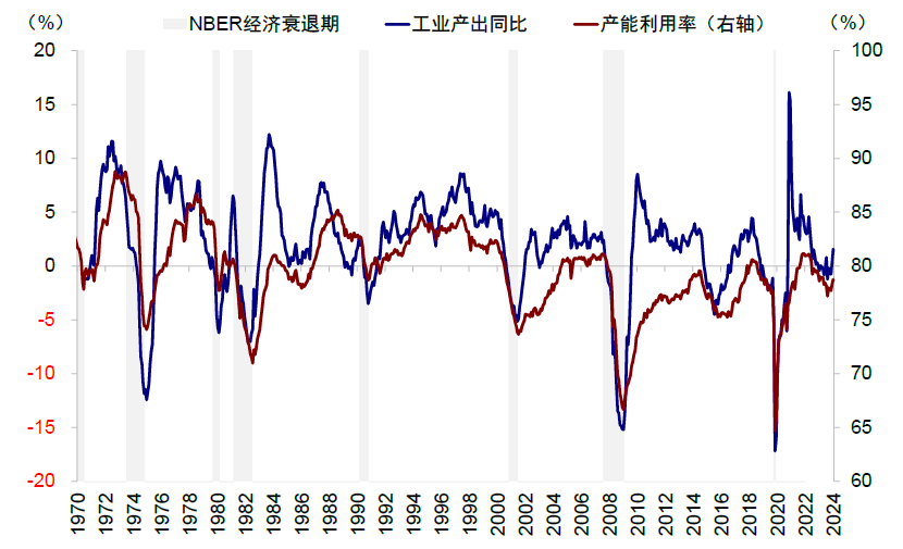 与此同时,需要注意的是此前 2023 年一、二季度连续两个季度 GDP 数据表现负增长时,曾也引发了市场对衰退的担忧,但是,事后衰退迟迟未到来,反而在 2024 年一、二季度实际 GDP 增长仍表现较为强劲,且美债收益率曲线倒挂已经持续近两年的时间,当前仍处于 1980 年以来最深的倒挂中,但是私人部门投资依然保持相对韧性,这些说明此轮经济周期货币周期与财政刺激的叠加效应导致了周期的‘特殊性’。
