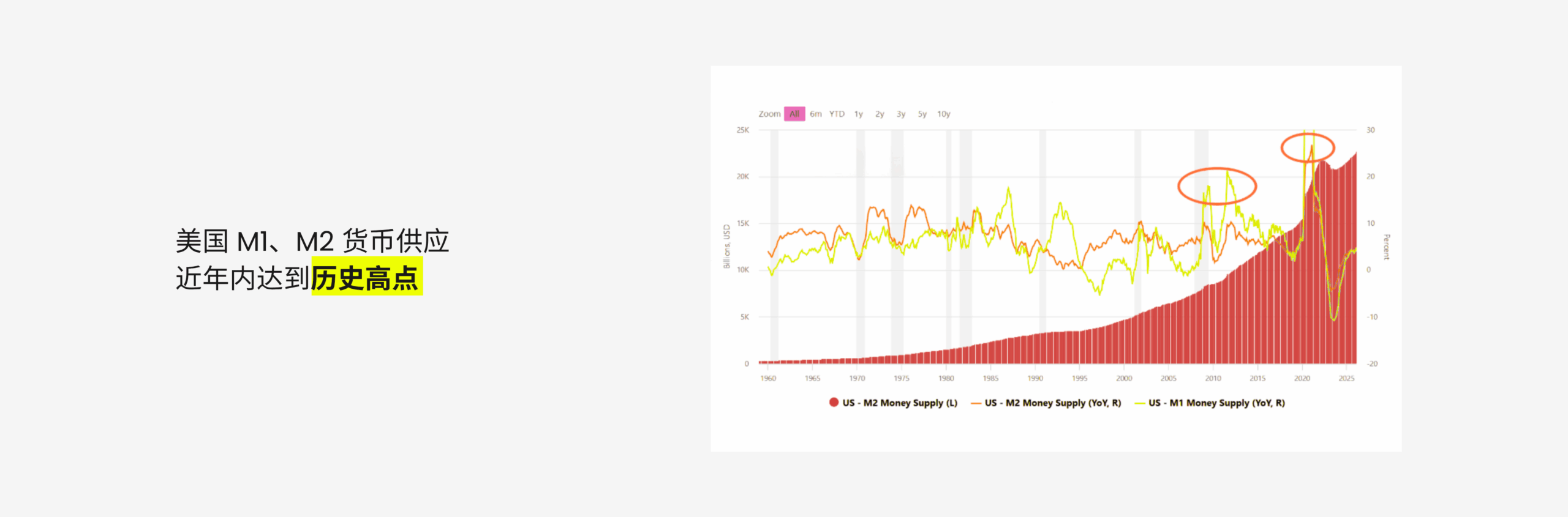 到了 2020 年,疫情爆发,美联储故技重施,也就有了之前的大放水的一幕。经济是刺激了,但货币供应也出现爆炸式增长,高通胀的影响到现在都还没解决,接着又赶上了美伊冲突带来的高油价。
