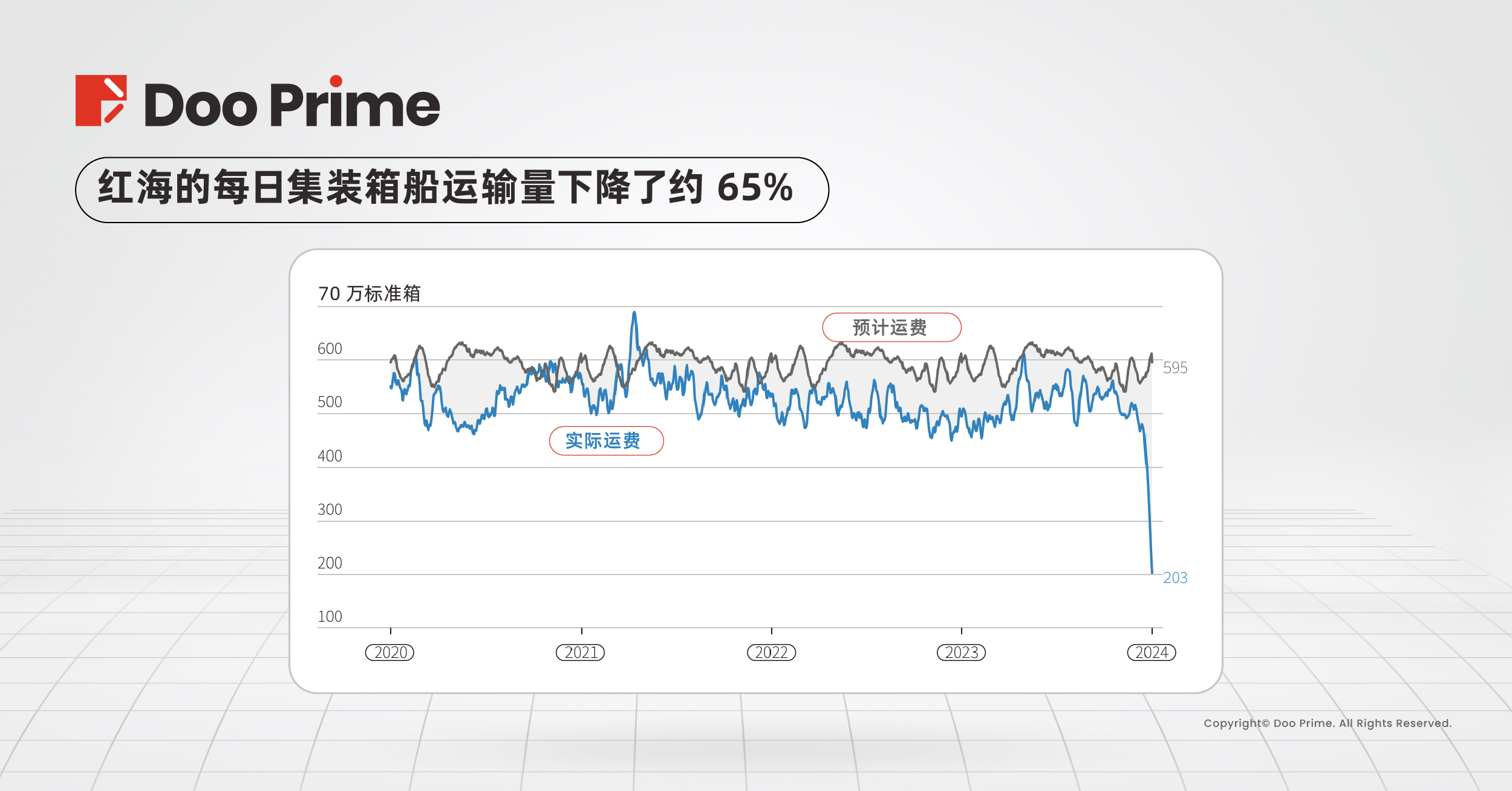 船运公司纷纷改道一条更长的东西航线,通过非洲南端,绕行好望角。这导运输时间增加了两周,严重影响了航运燃料、运费和保险费率。值得注意的是,集装箱货运量受到了严重打击,暴跌了约 65%,远低于预期水平。
