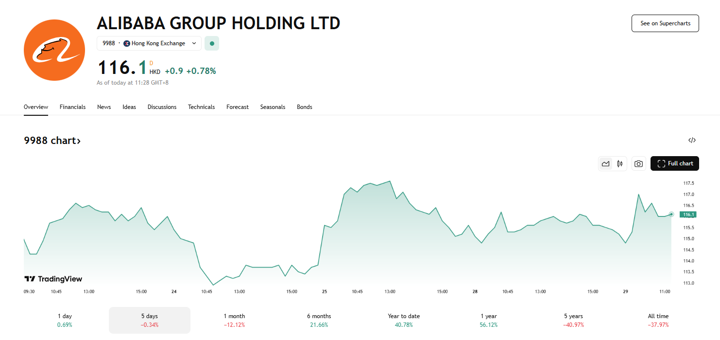 港股三大指数集体回暖,阿里巴巴涨近 0.8%