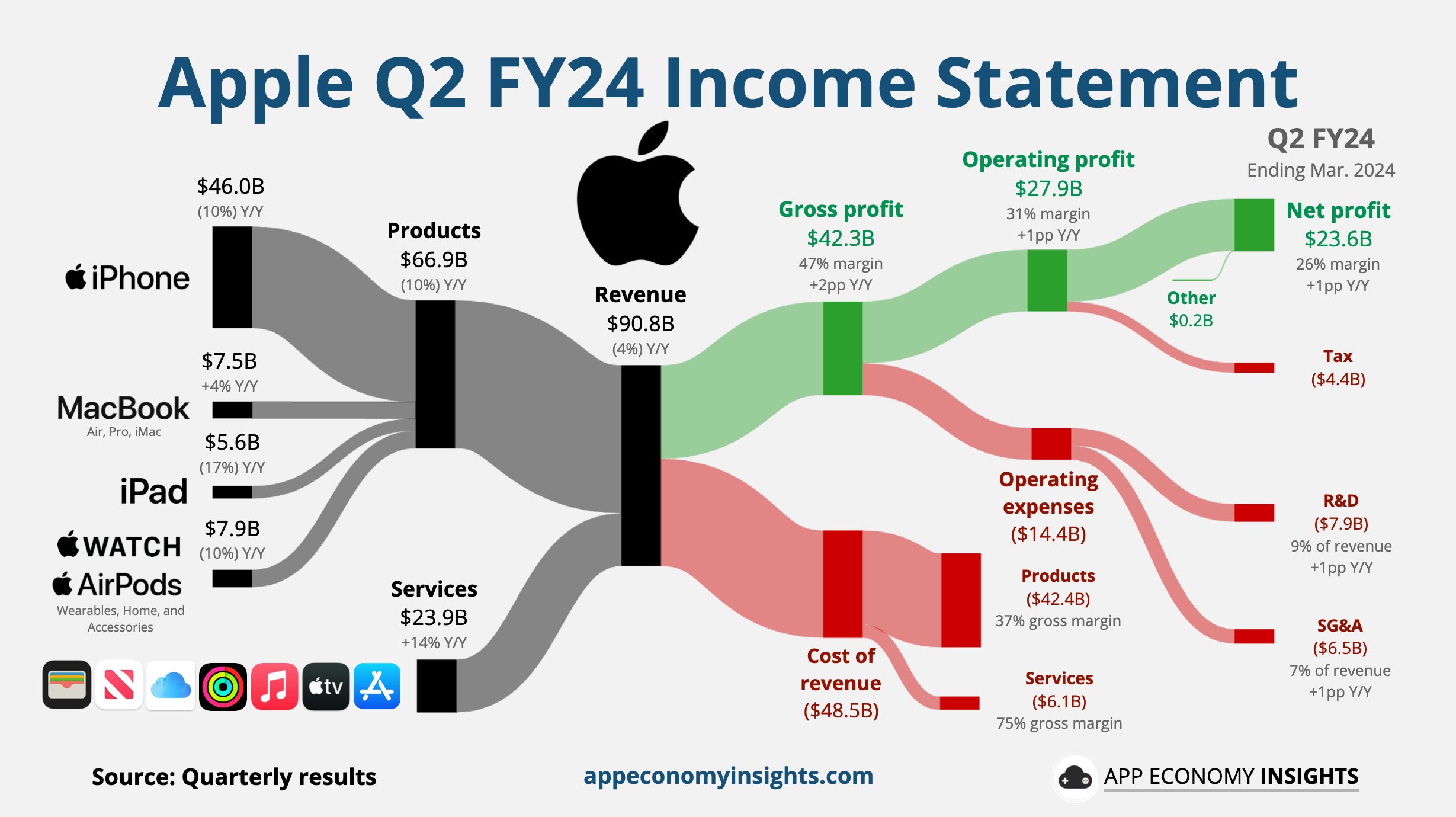 利润率最高且占总收入 20% 的服务收入同比增长 14.2% 至 238.7 亿美元,高于市场预期的 232.8 亿美元,连续五个季度创新高。