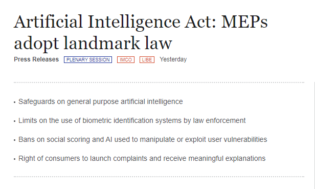 欧盟通过全球首个 AI 监管法案