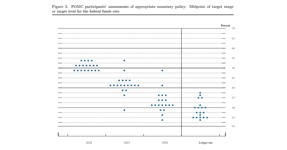 - 本次预计利率在 5.0% 到 5.25% 的有七人,七人预计今年降息一次,上次这样预测的仅两人。