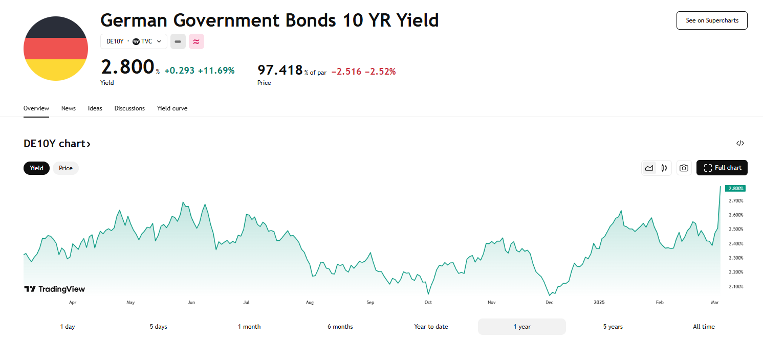 梅尔茨的这一举措引发了金融市场的强烈反应,投资者普遍认为欧洲最大经济体有望迎来新的增长契机。