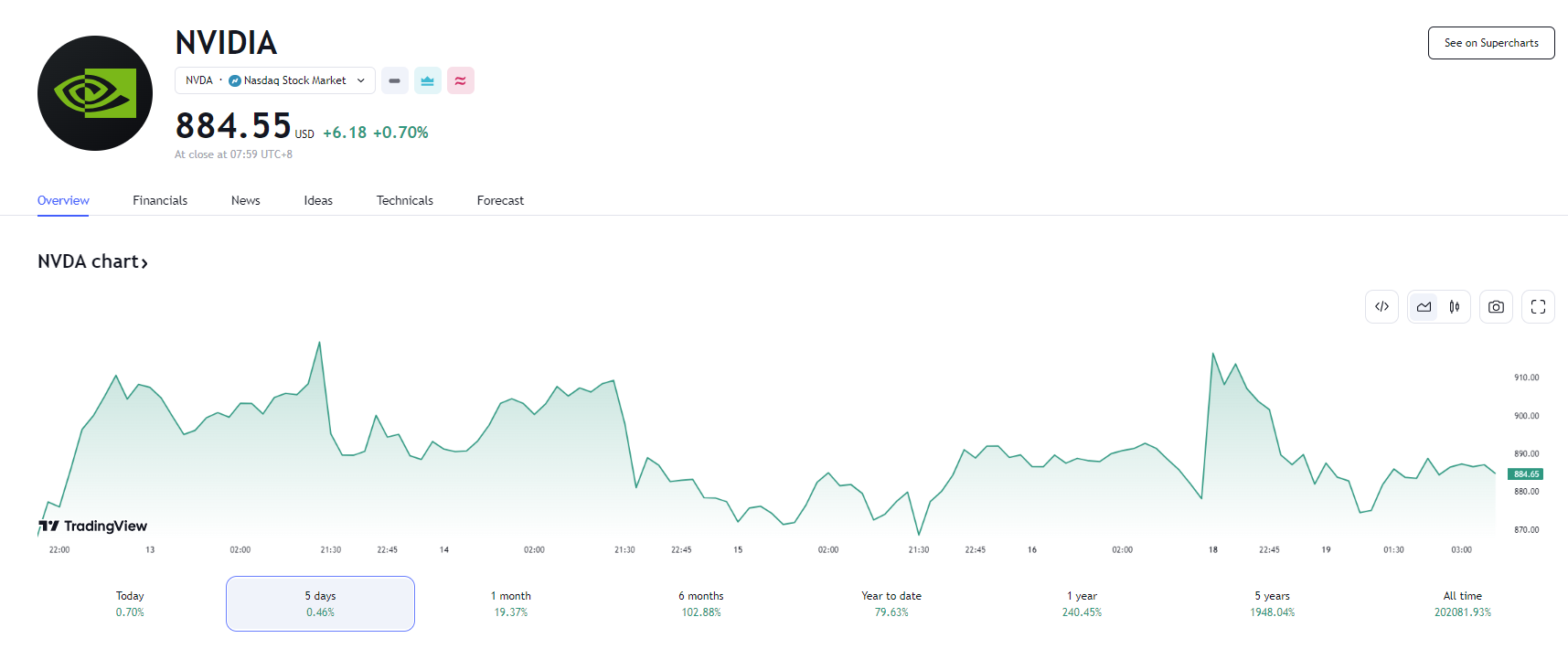 英伟达股价在 18 日当天早盘一度上涨超过 4%,但在黄仁勋演讲结束后,英伟达股价盘后一度跌超 2%,最终反弹收涨 0.7%,报每股 884.55 美元,总市值约 2.21 万亿美元。