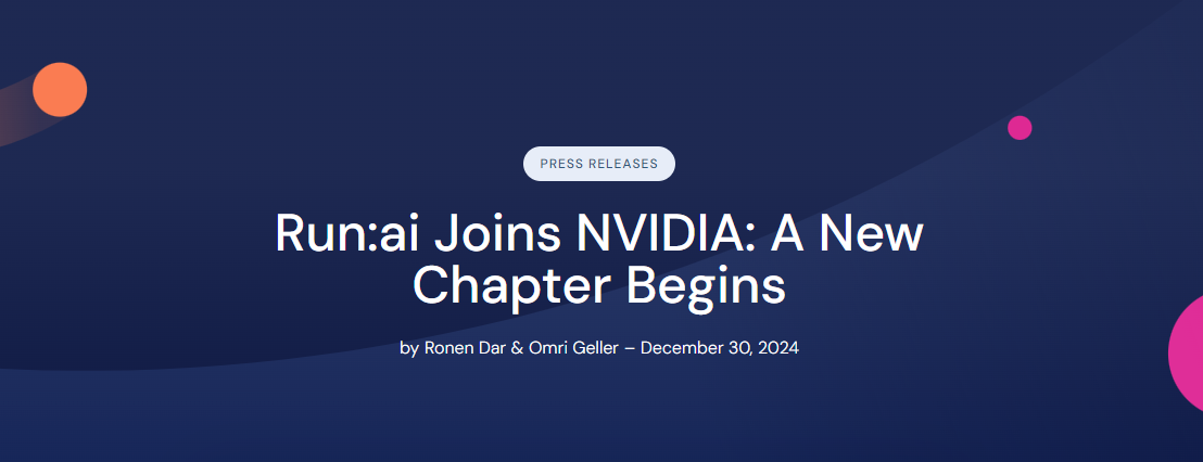 12 月 30 日,芯片巨头英伟达终于完成了对以色列 AI 初创公司 Run:ai 的收购,因为欧盟委员会本月 20 日无条件批准了英伟达斥资 7 亿美元的收购计划,认为该交易不会引发欧洲经济区的竞争问题。
