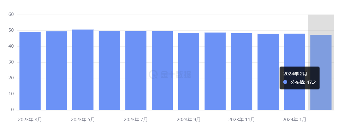 标普全球报告称,日本 2 月 Jibun 制造业采购经理指数(PMI)初值由上月的 48 跌至 47.2,为 2020 年 8 月以来的最低水平,也是该指标连续第九个月低于荣枯线 50。衡量日本制造业活动的关键指标跌至三年多来的最低水平,这表明随着经济艰难走出衰退,日本商业环境正在恶化。这也向正考虑退出超宽松政策的日本央行发出了警示信号。