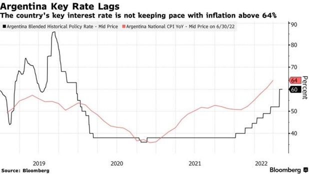 为对抗恶性通胀、缓解阿根廷比索面临的巨大贬值压力,阿根廷央行今年以来每个月都在加息,就在两周前,阿根廷央行大幅加息 800 个基点。