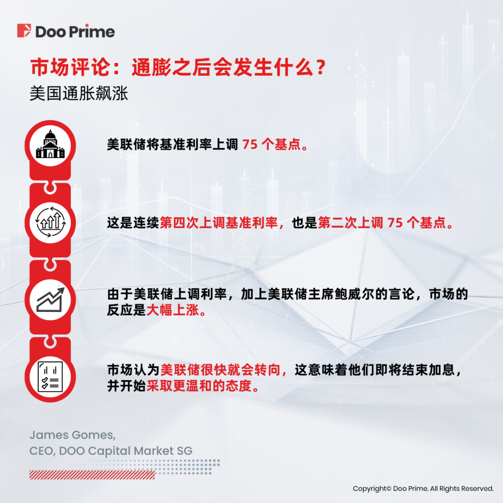 我们已经了解了美国高居不下的通货膨胀对市场走势有哪些影响,接下来就让我们关注一下,具备 30 年金融领域从业经验的 Doo Prime 分析师詹姆斯·戈麦斯(James Gomes)的专业分析与解读: