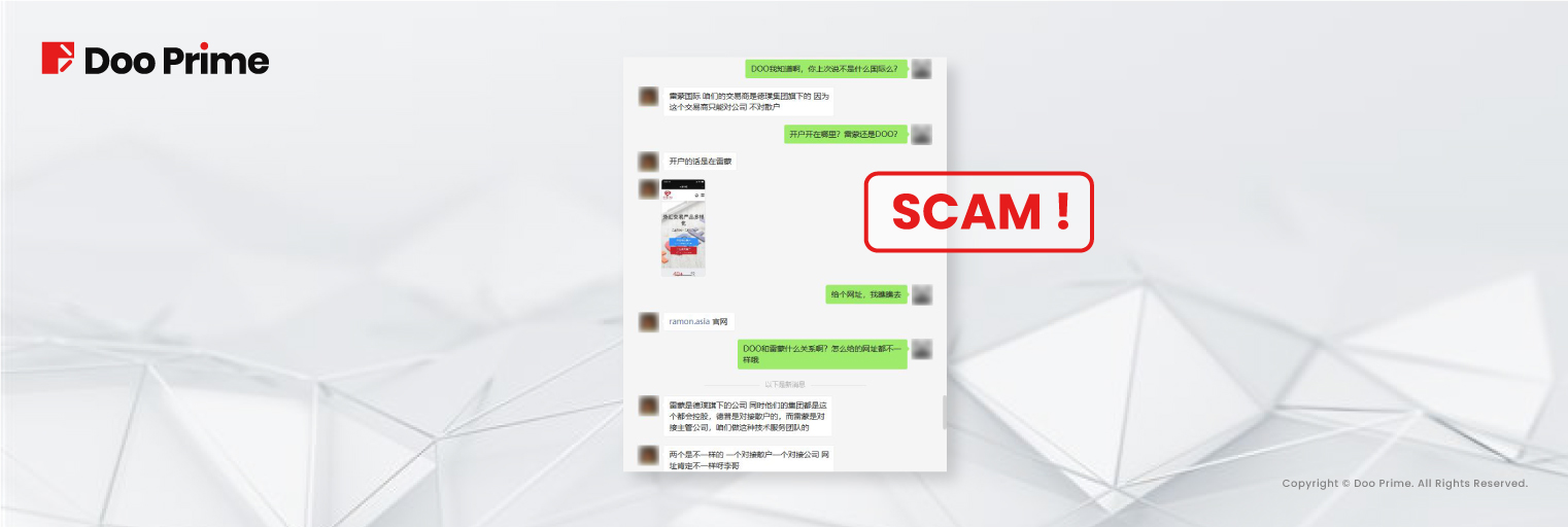 近日,Doo Prime 收到反馈获悉,雷蒙国际有限公司(Ramon Capital Limited,以下简称雷蒙国际)再次私自冒用我司名义进行虚假宣传,企图误导客户,对我司声誉及客户资金安全造成影响。