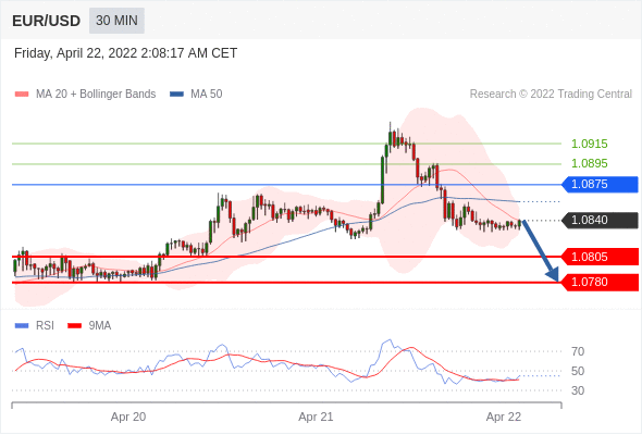 Short positions below 1.0875 with targets at 1.0805 & 1.0780 in extension.