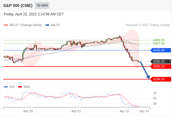 Short positions below 4435.00 with targets at 4356.00 & 4294.00 in extension.