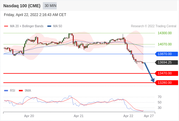 Short positions below 13870.00 with targets at 13470.00 & 13280.00 in extension.
