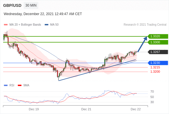 Long positions above 1.3230 with targets at 1.3300 & 1.3320 in extension.
