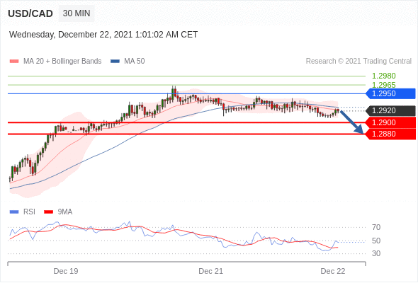 Short positions below 1.2950 with targets at 1.2900 & 1.2880 in extension.