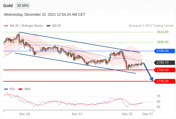Short positions below 1799.00 with targets at 1784.00 & 1775.00 in extension.