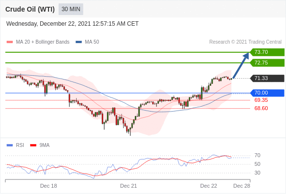Long positions above 70.00 with targets at 72.75 & 73.70 in extension.