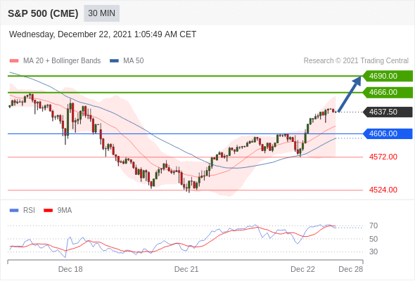 Long positions above 4606.00 with targets at 4666.00 & 4690.00 in extension.