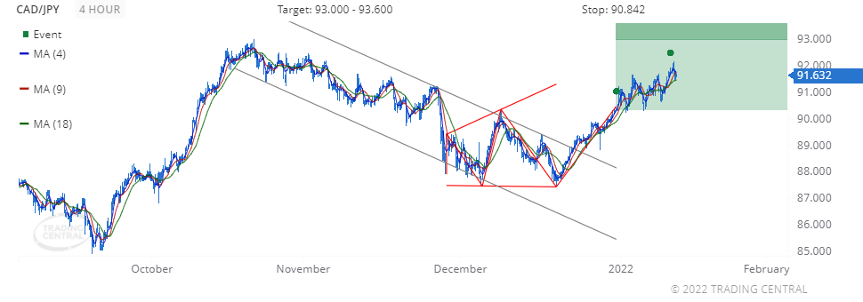 We found a pattern called Megaphone Bottom on 2021 Dec 31 at 09:00 GMT on a 4 hour chart, providing a target price for up to 2 weeks in the range of 93.000 to 93.600.