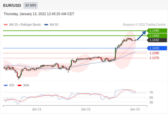 Long positions above 1.1410 with targets at 1.1460 & 1.1480 in extension.