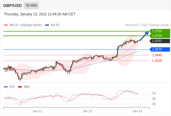 Long positions above 1.3670 with targets at 1.3730 & 1.3750 in extension.