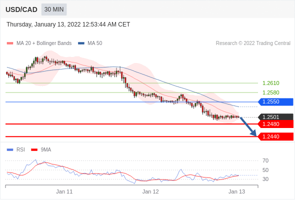 Short positions below 1.2550 with targets at 1.2480 & 1.2440 in extension.