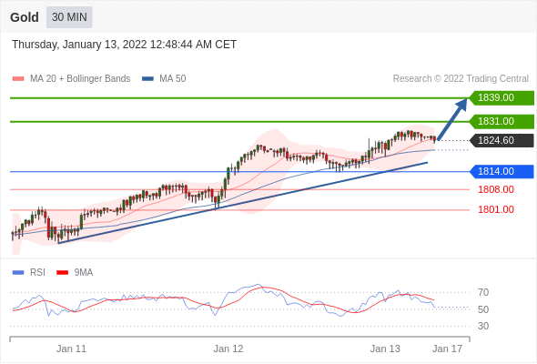 Long positions above 1814.00 with targets at 1831.00 & 1839.00 in extension.