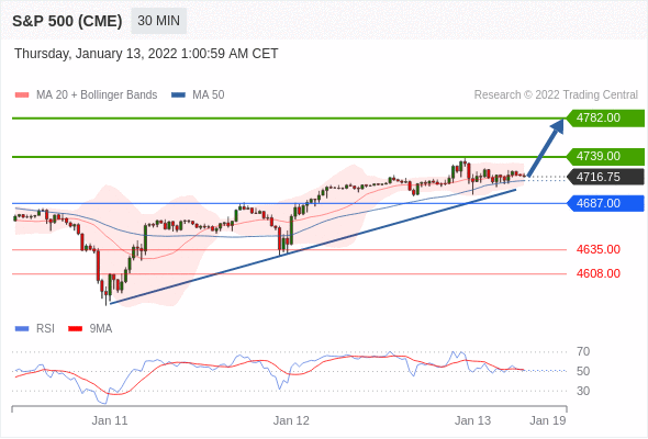 The break above 4687.00 is a positive signal that has opened a path to 4739.00.