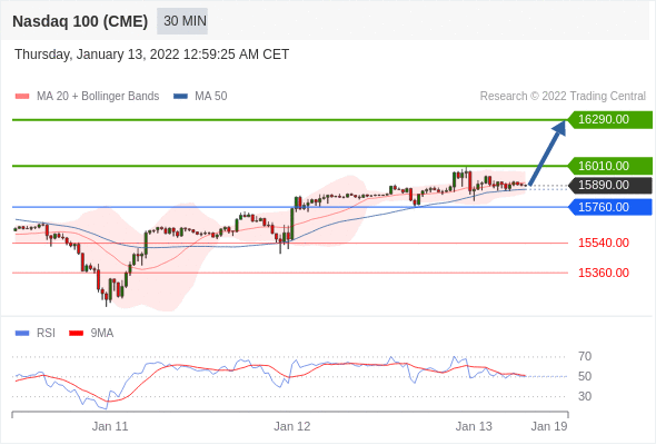 Long positions above 15760.00 with targets at 16010.00 & 16290.00 in extension.