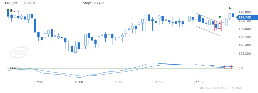The MACD generated a bullish signal on 2022 Jan 26 at 02:15 GMT.