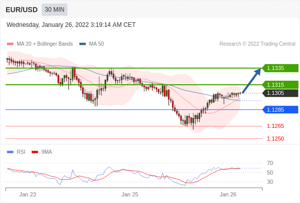 Long positions above 1.1285 with targets at 1.1315 & 1.1335 in extension.