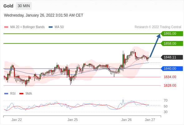 Long positions above 1840.00 with targets at 1858.00 & 1865.00 in extension.