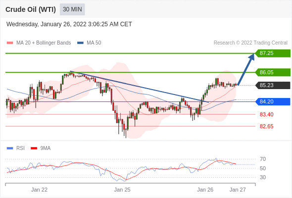 Long positions above 84.20 with targets at 86.05 & 87.25 in extension.