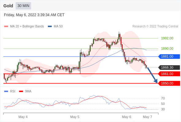 Short positions below 1881.00 with targets at 1861.00 & 1850.00 in extension.