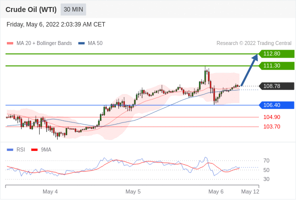 Long positions above 106.40 with targets at 111.30 & 112.80 in extension.