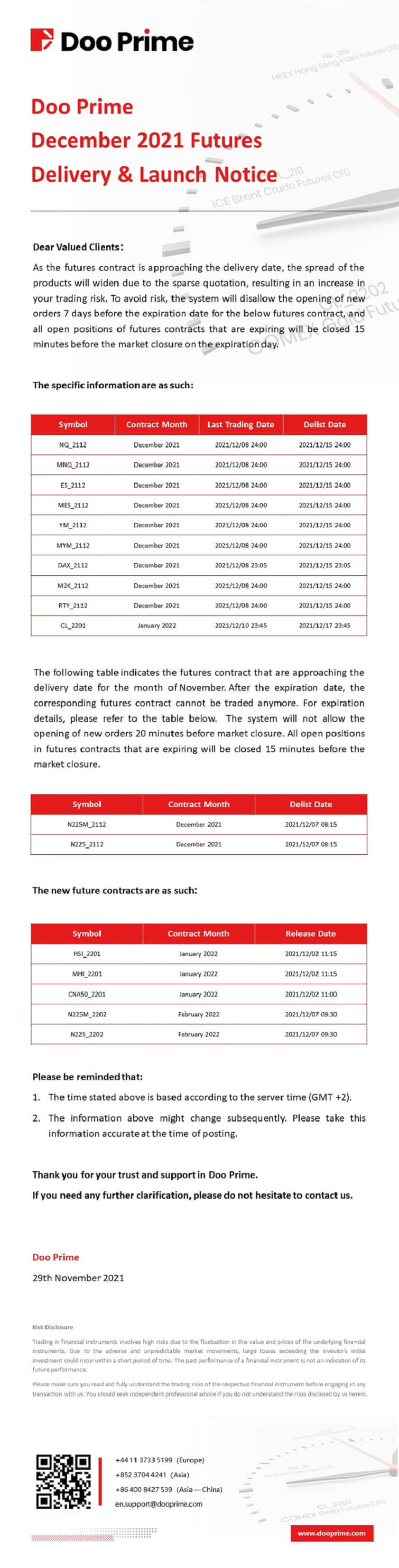 Doo Prime December 2021 Futures Delivery & Launch Notice