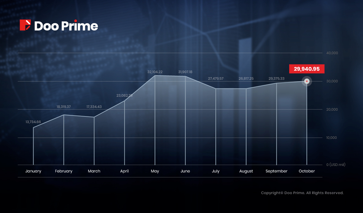 Doo Prime, a leading global online broker, recorded USD29.94 billion of total trading volume in October 2021.