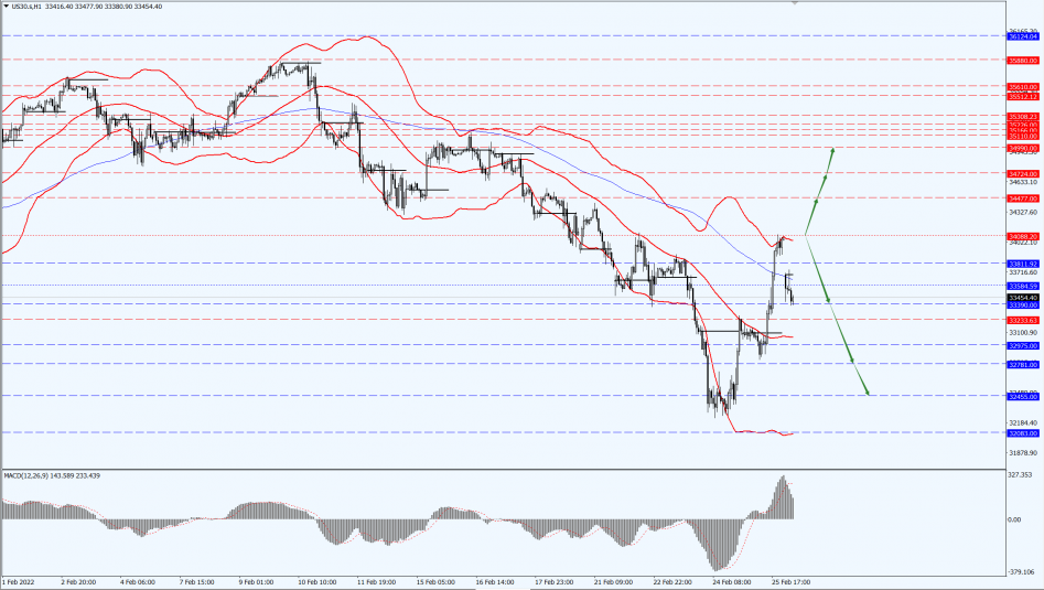 The Dow focuses on the 34088-line today. If the Dow runs stably below the 34088-line, it will pay attention to the support strength of the 33390 and 32781 positions. If the Dow breaks above the 34088-line, then pay attention to the suppression of the 34477-line.