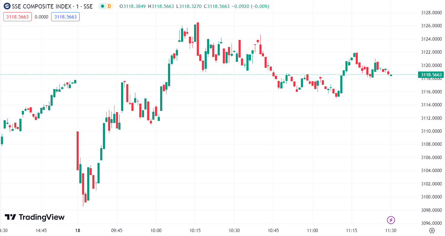 - Shanghai Composite Index (SHCOMP) rose by 0.03% to close at 3,118.57 points.