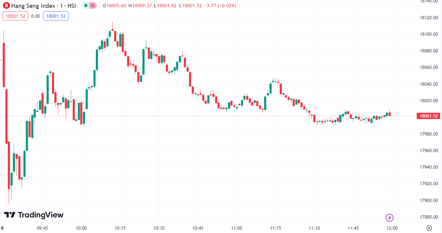 - Hang Seng Index (HSI) fell by 1% to close at 18,001.52 points.
