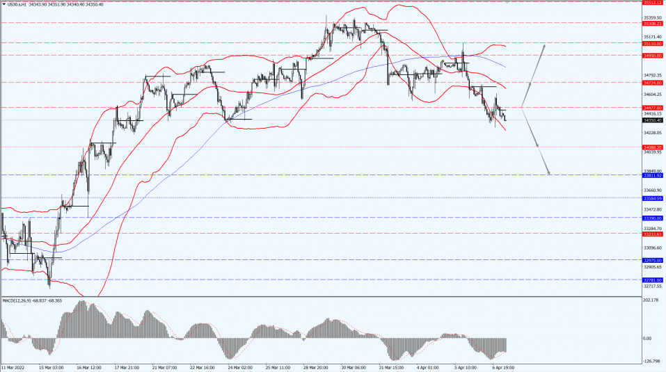 The Dow focuses on the 34477-line today. If the Dow runs steadily above the 34477-line, it will pay attention to the suppression strength of the 34724 and 35110 positions. If the Dow index breaks below the 34477-line, it will pay attention to the support strength of the 34088 and 33811 positions.
